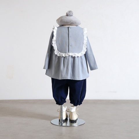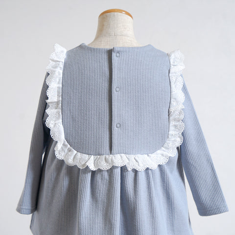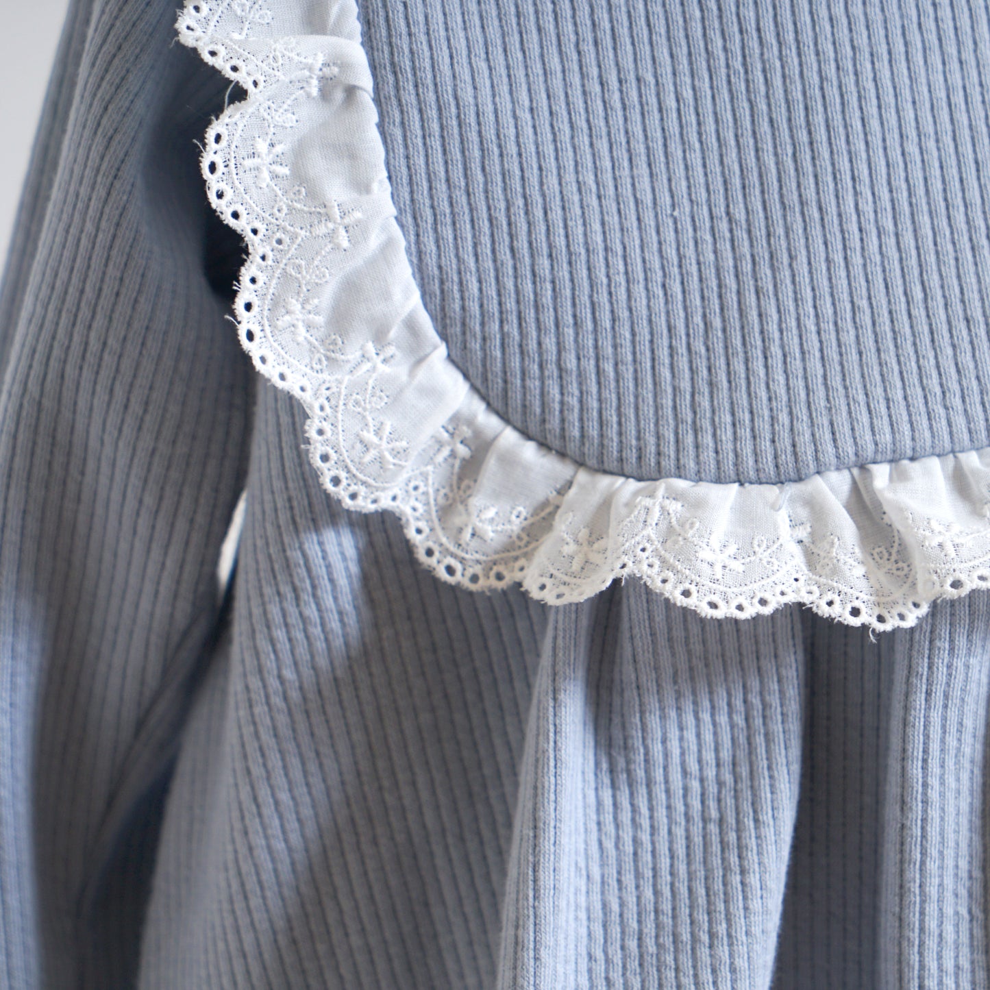 ・前後共にレースをたっぷりと付けてフェミニンな一枚に仕上げました。