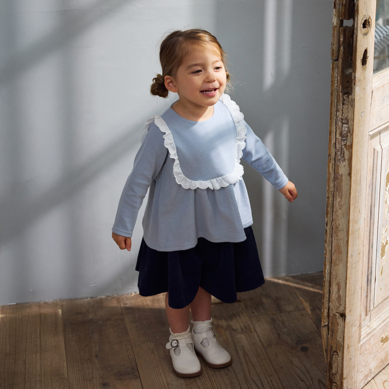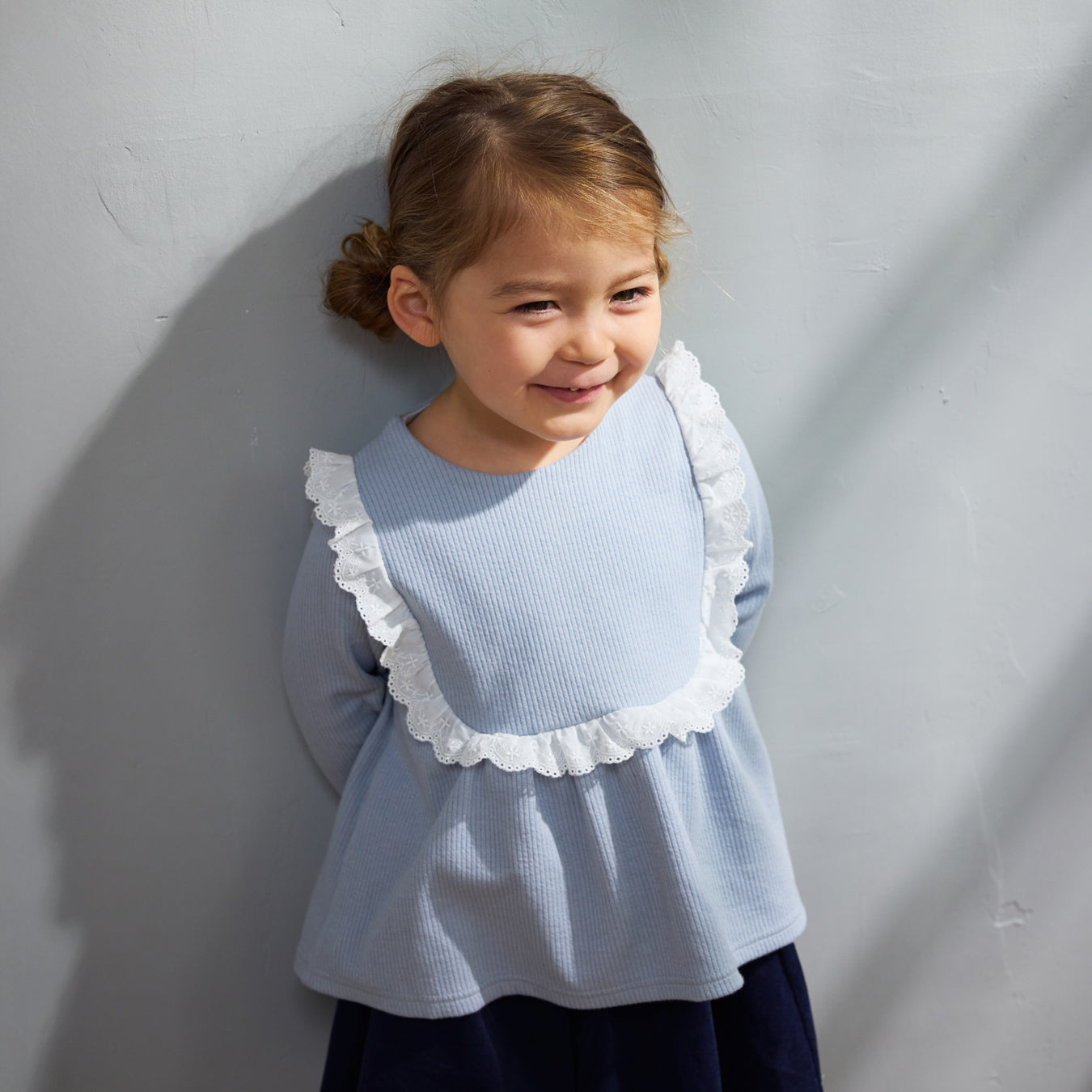 ・やわらかさとストレッチ性をそなえたリブ生地で作った着心地の良いトップスです。