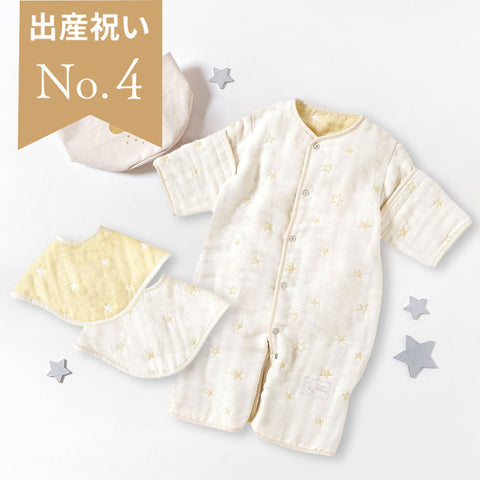 【出産祝いNO.1】人気のふくふくガーゼ6wayスリーパーと2wayビブをお揃いで。帆布のBAGに詰め込んだセット。