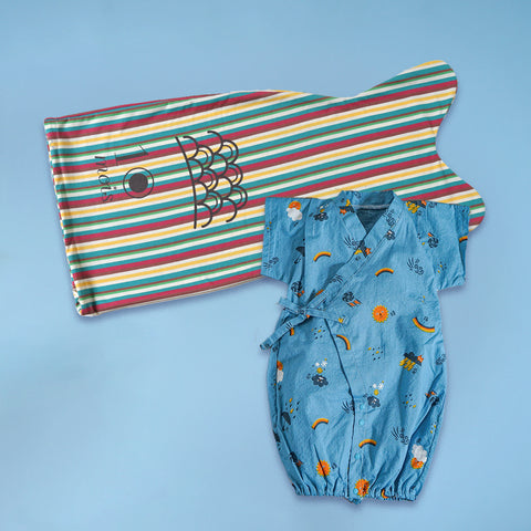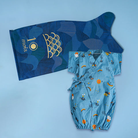 オリジナルのこいのぼりバッグと、肌離れがよく暑い夏も涼しい甚平ドレスのギフトセット。