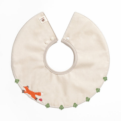 刺繍スタイ(きつね×クローバー)/3重ガーゼスリーパー ピケ