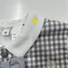 肌触りの良いTシャツに使用されるような伸縮性のある素材をベースに、さわやかなギンガムチェックのベストと蝶ネクタイで、セレモニーやおでかけにも最適な1枚です。
